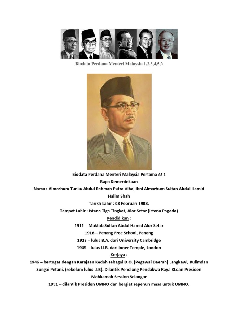 Biodata Perdana Menteri Malaysia 1 Pdf